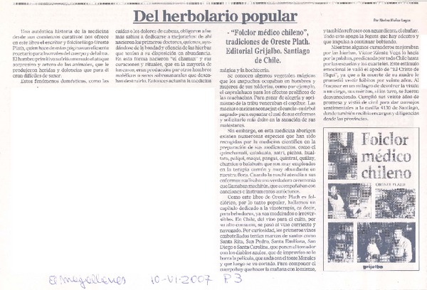 Del herbolario popular [artículo]Marino Muñoz Lagos.