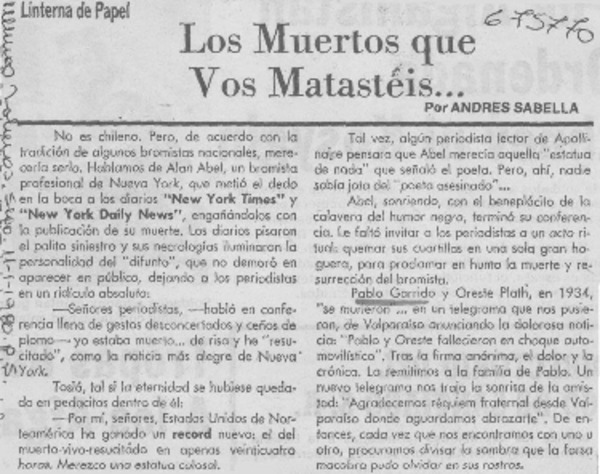 Tal como es la vida! [artículo] Abelardo Troy.