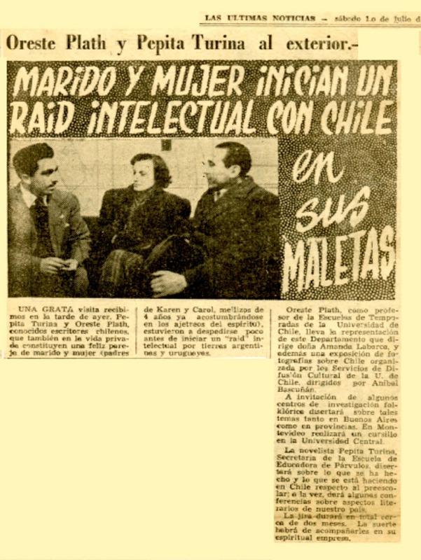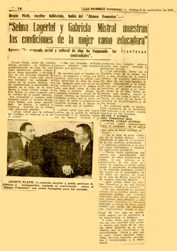 Autoras chilenas - Autores chilenos - Mistral, Gabriela - Entrevistas - Plath, Oreste - Lagerlöf, Selma - Autoras suizas