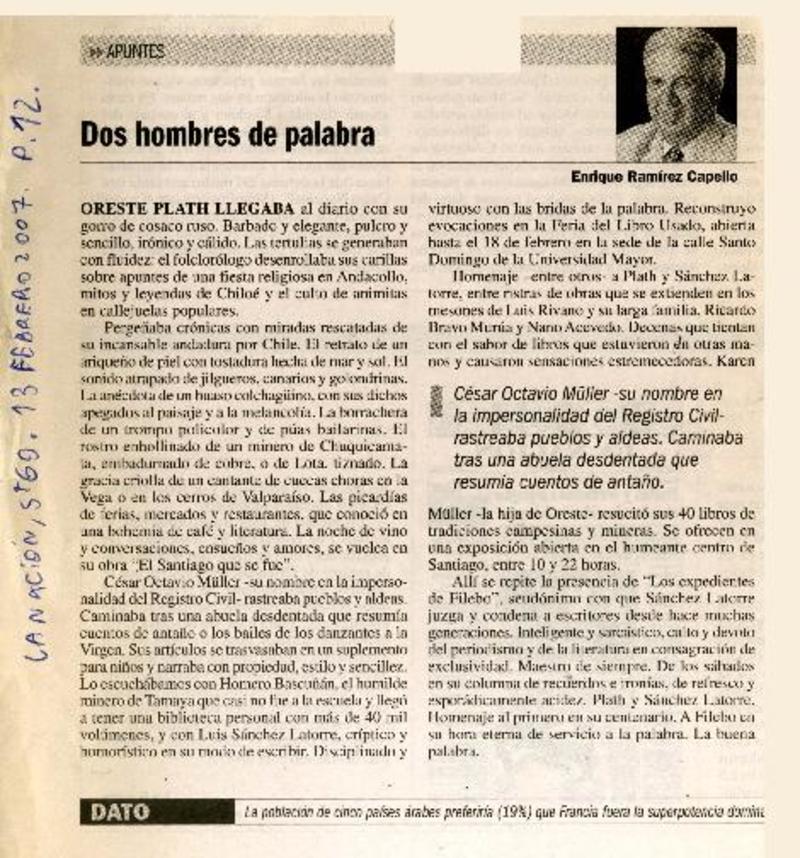 Dos hombre de palabra [artículo]Enrique Ramìrez Capello.