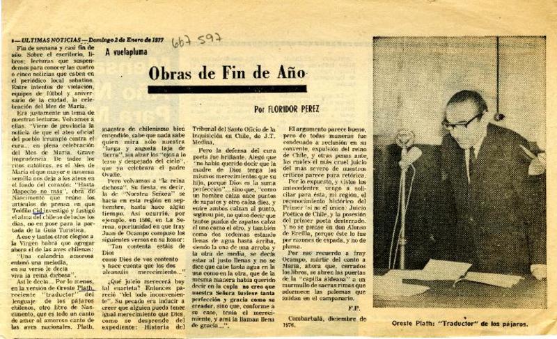 Reconocen labor de Oreste Plath [artículo].