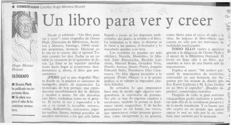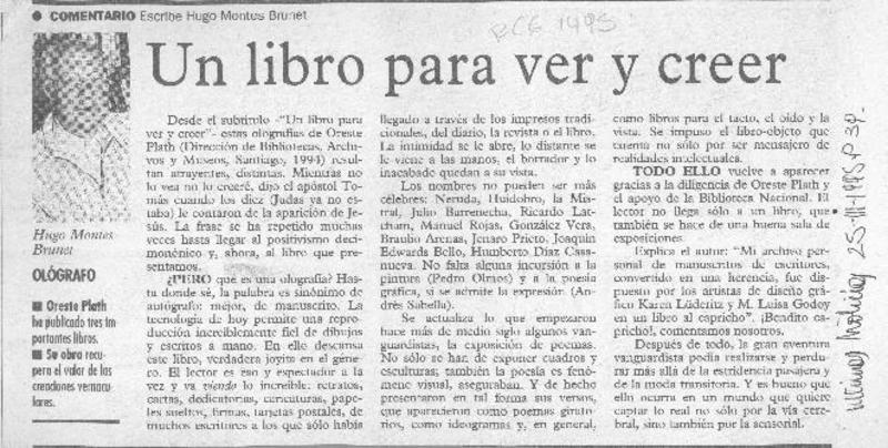 Un Libro para ver y creer [artículo] Hugo Montes Brunet.