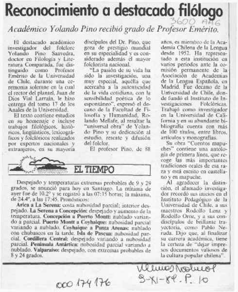 El profesor Yolando Pino [artículo] Eugenio Pereira Salas.