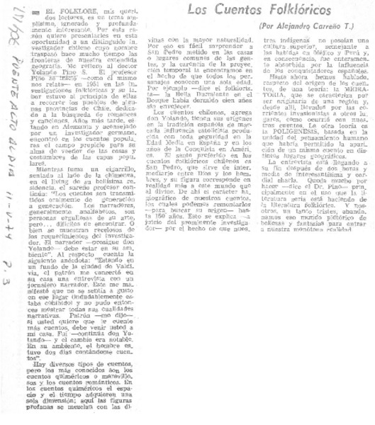 Los cuentos floklóricos [artículo] Alejandro Carreño T.