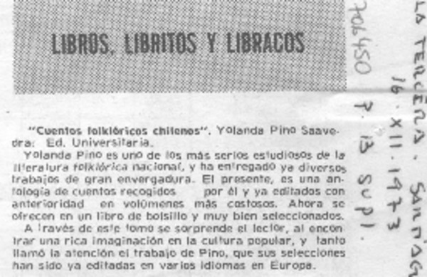 Cuentos folklóricos [artículo] Ramón Riquelme.