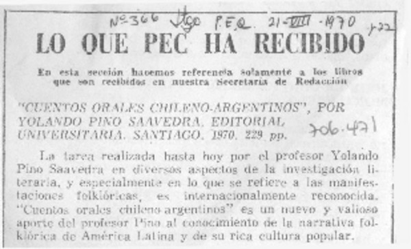 Pino Saavedra, Yolando - Autores chilenos - Cuentos orales chileno-argentinos