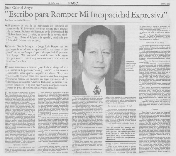 "Escribo para romper mi incapacidad expresiva" [artículo] Elena Irarrázabal Sánchez.