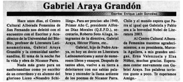 Gabriel Araya Grandón [artículo] Enrique León González.