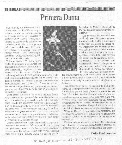 Primera Dama [artículo] Carlos René Ibacache