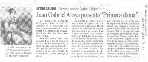 Juan Gabriel Araya presenta "Primera dama" [artículo].