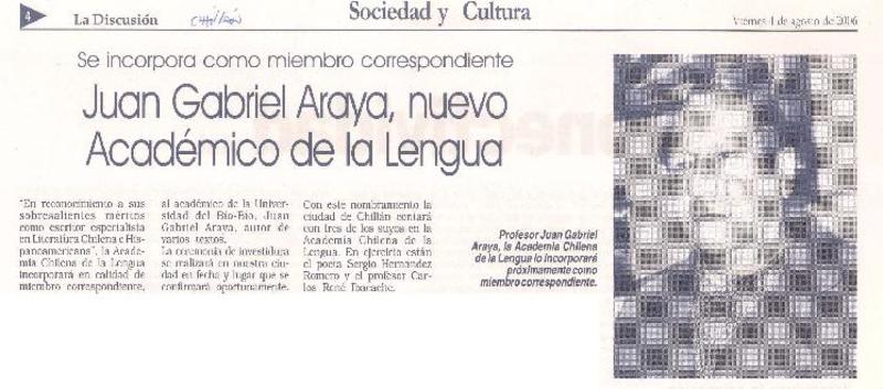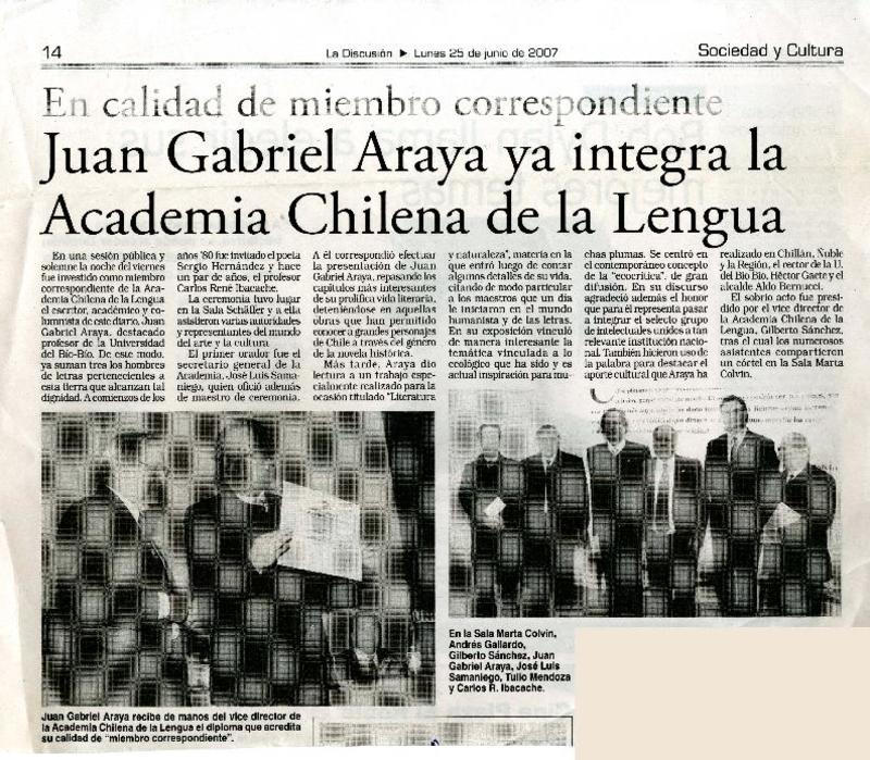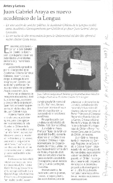 Juan Gabriel Araya, nuevo académico de la lengua. [artículo]