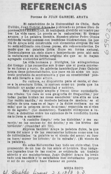 "Referencias" (Poesía) [artículo] Jorge Torres U.