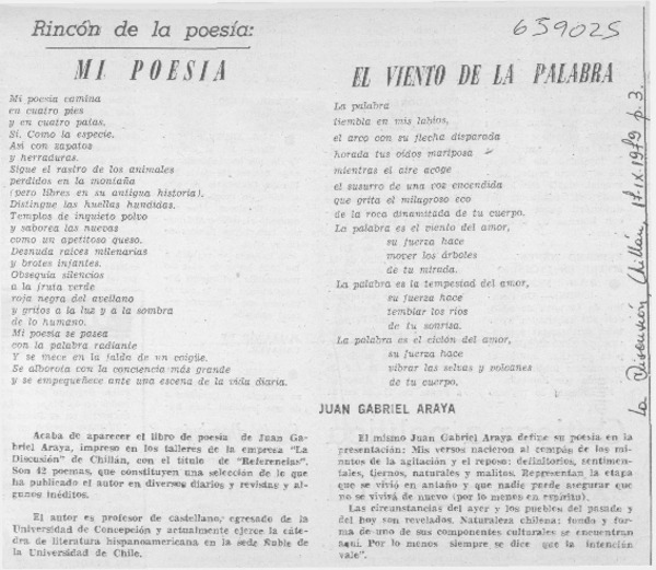Poeta invitado, Juan Gabriel Araya [artículo].