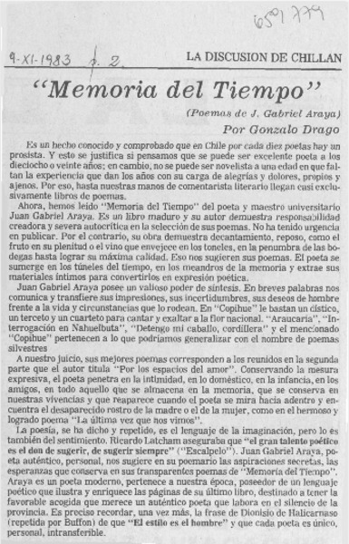 "Memoria del tiempo" [artículo] Gonzalo Drago.