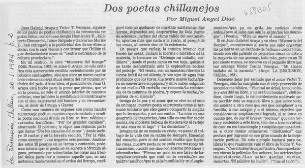 Dos poetas chillanejos [artículo] Miguel Angel Díaz.