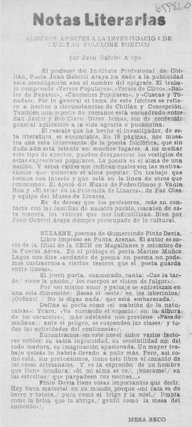 Autores chilenos - Algunos aportes a la investigación de nuestro folclore poético - Pinto, Gumercindo - Araya G., Juan Gabriel - Suzanne