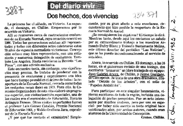 Dos hechos, dos vivencias [artículo] Cronos.