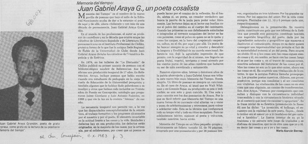 Juan Gabriel Araya, poeta "memorialista". [artículo]