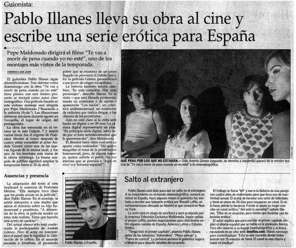 Pablo Illanes lleva su obra al cine y escribe una serie erótica para España [artículo] Verónica San Juan.