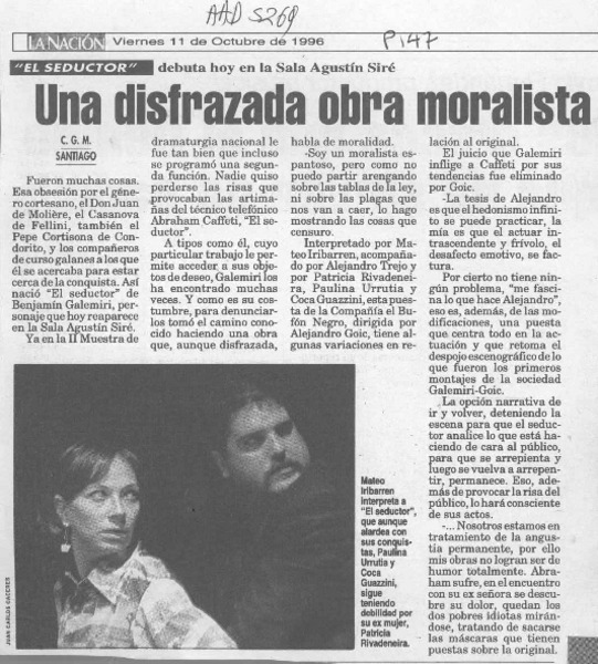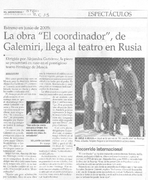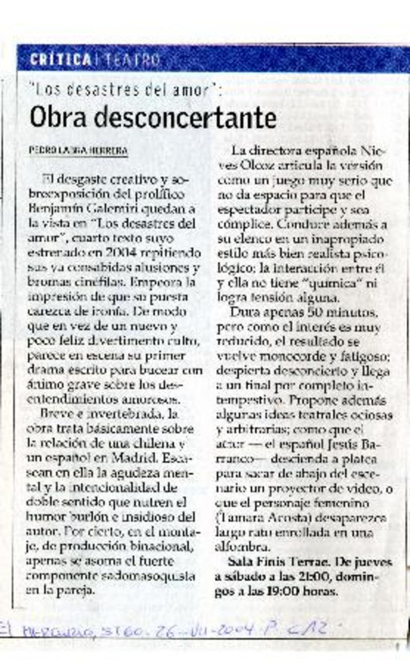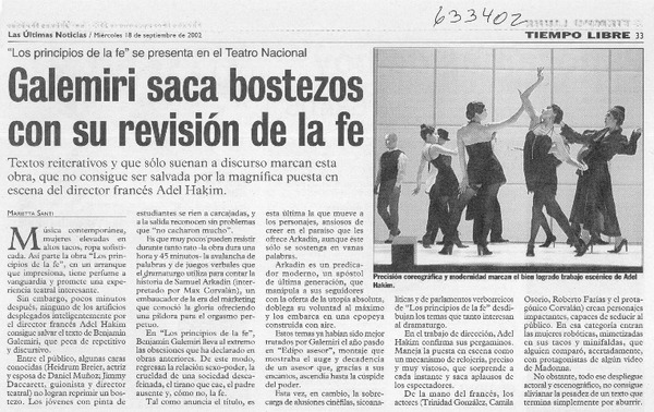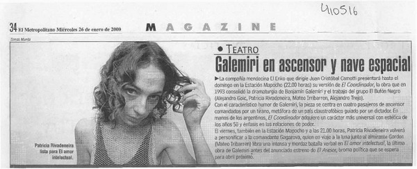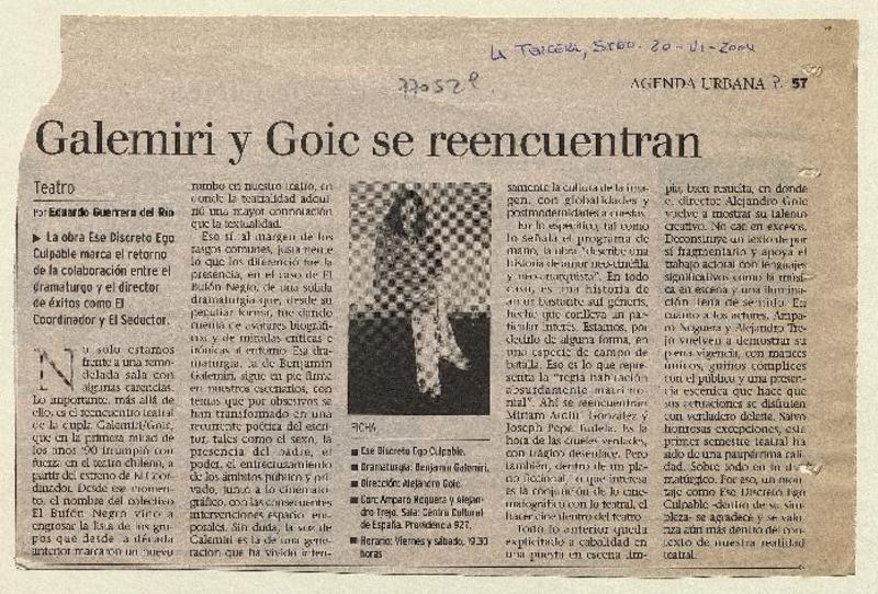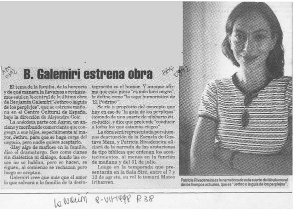 De la Parra sube al escenario en obra de Benjamín Galemiri [artículo] Leopoldo Pulgar I.