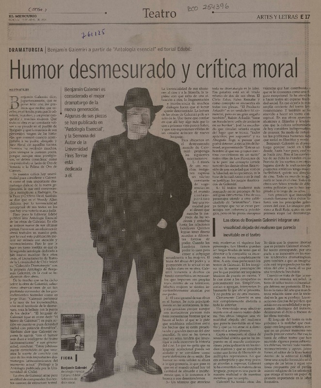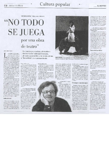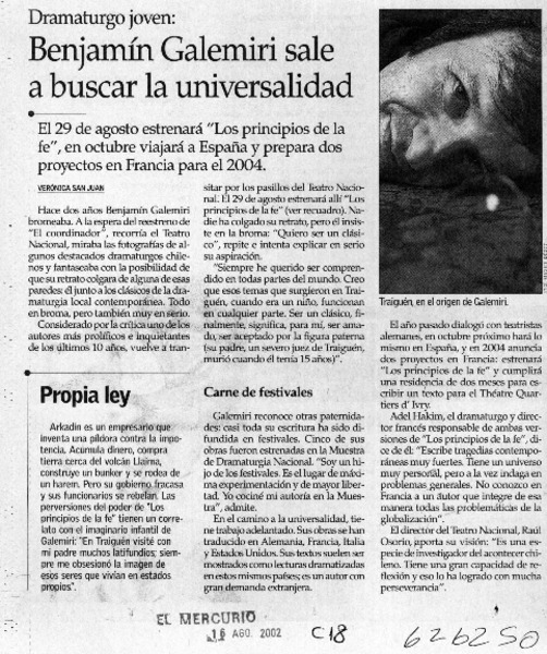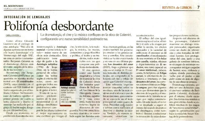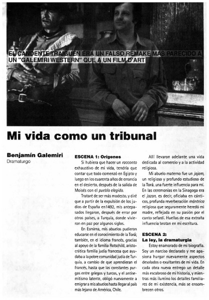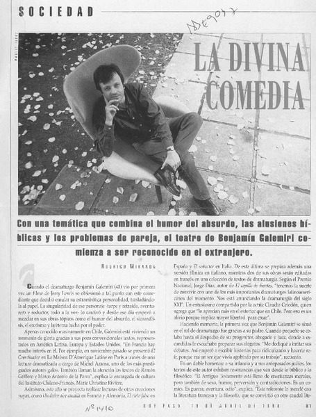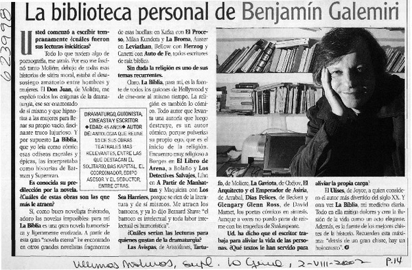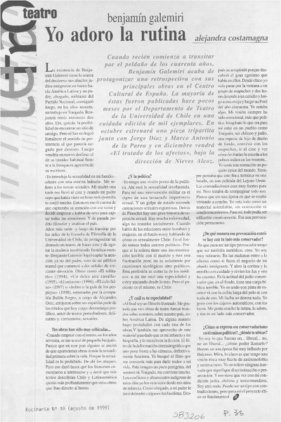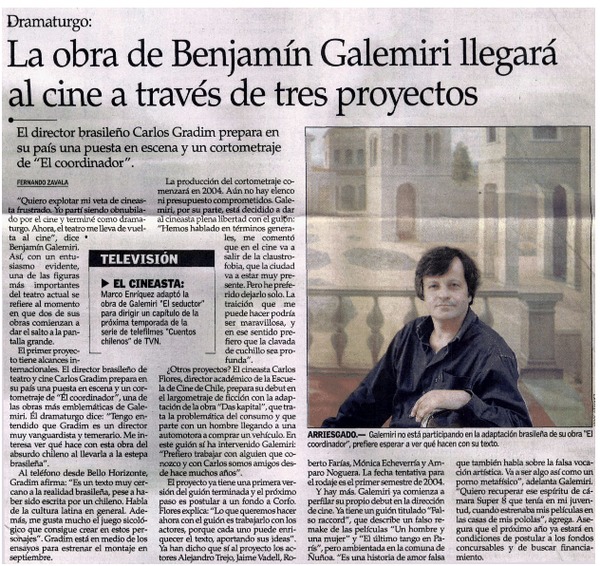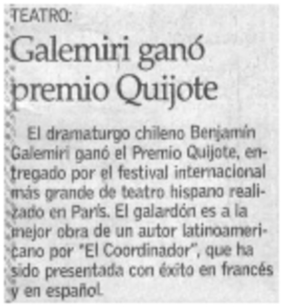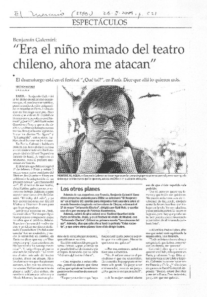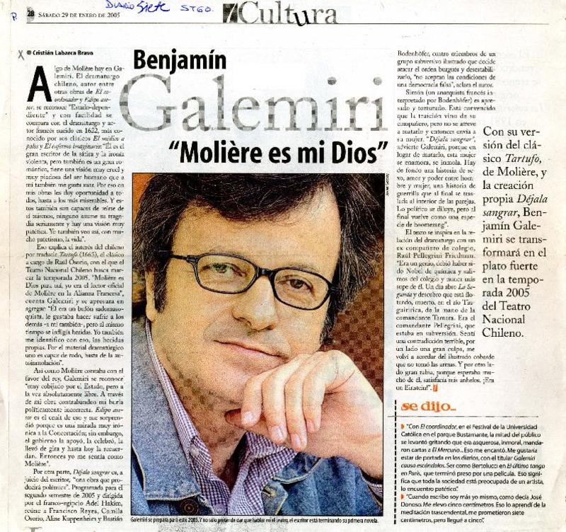 Benjamín Galemiri "Me considero dramaturgo un anarquista" [entrevista] [artículo] : Maureen Lennon Zaninovic.