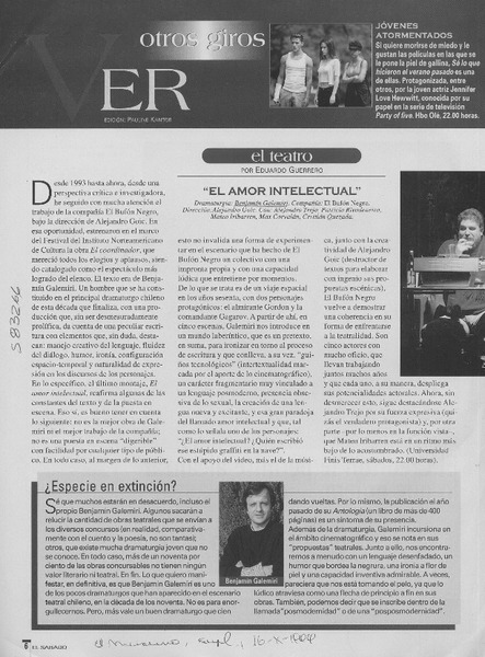El amor intelectual, un nuevo estreno de Galemiri [artículo] Leopoldo Pulgar I.