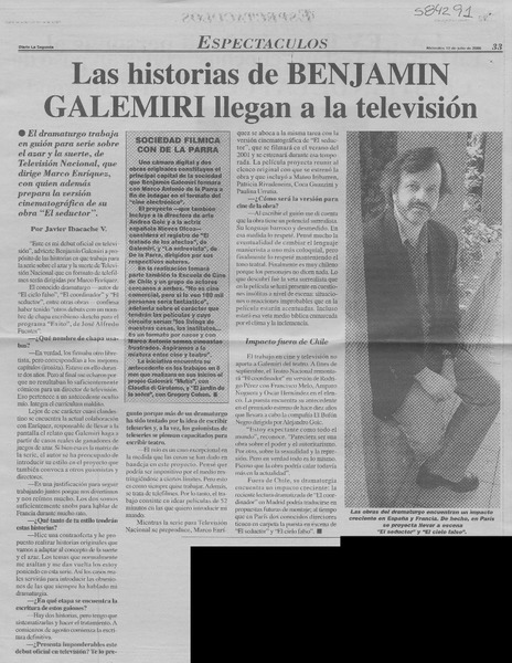 Contreras graba en cuentos chilenos [artículo] Soledad Escudero Z.