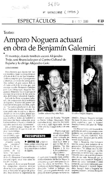 Amparo Noguera actuará en obra de Benjamín Galemiri [artículo] Verónica Marinao.