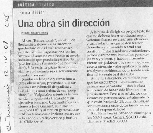 Una obra sin dirección [artículo] Pedro Labra Herrera.