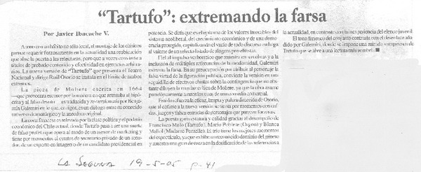 "Tartufo", extremando la farsa [artículo] Javier Ibacache V.