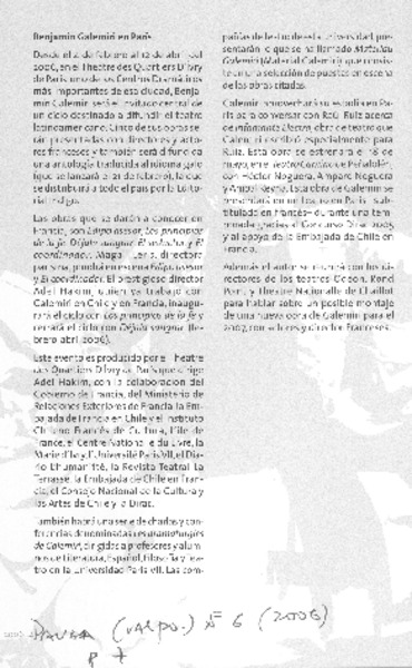 Benjamín Glalemiri, el llamado "dramaturgo del la transición" "Salvo Lagos, en los discursos nunca se habla de cultura" [entrevista] / [artículo] : Jimmy Gavilán.