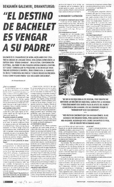 El destino de Bachelet es vengar a su padre" [entrevista] [artículo] Fernando Ramírez III