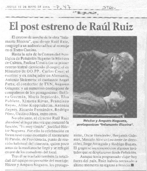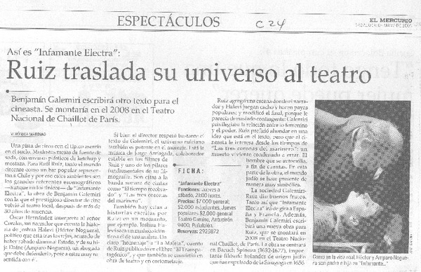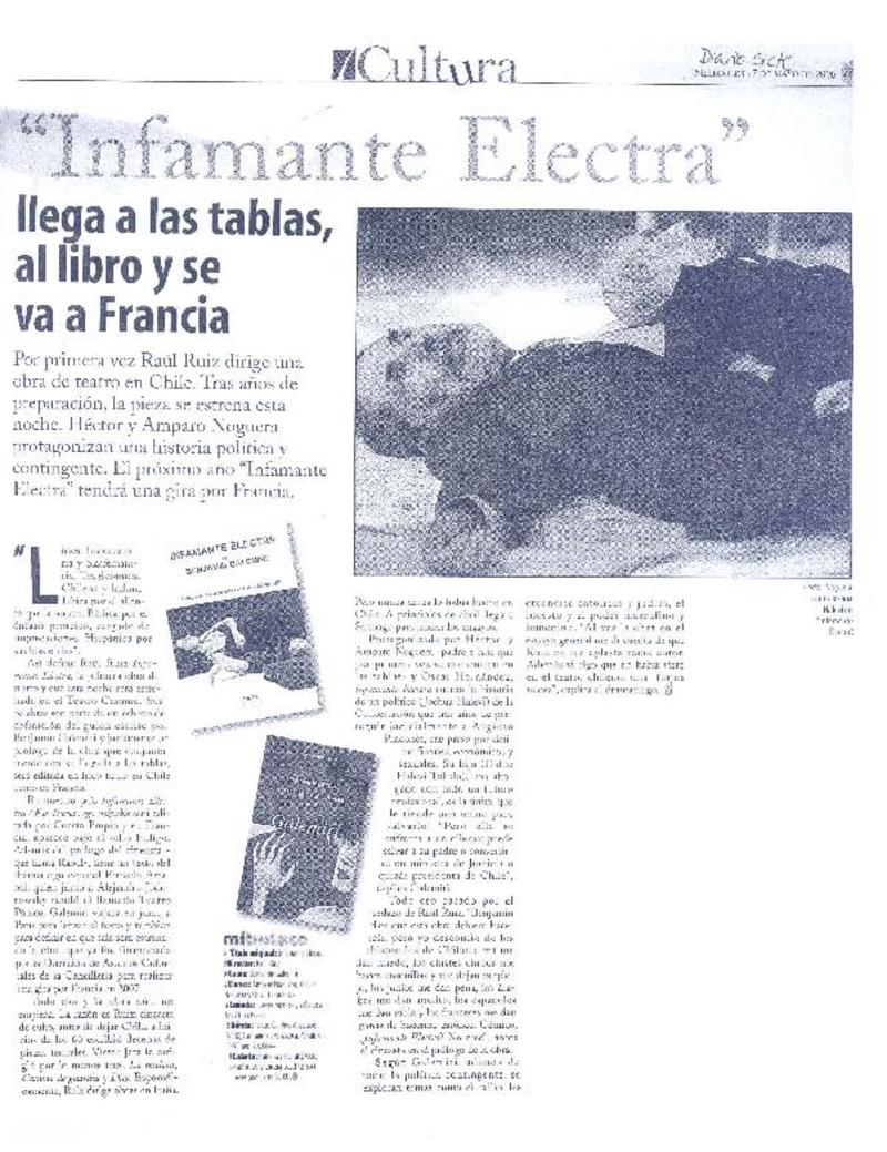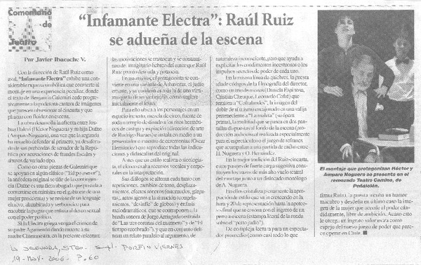 "Infamante Electra": Raúl Ruiz se adueña de la escena [artículo]Javier Ibacache V.