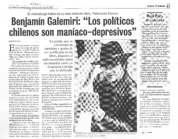 "Los políticos chilenos son maníaco-depresivos" [entrevista] [artículo] Jazmín Lolas.