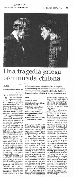 Una tragedia griega con mirada chilenas [artículo] Eduardo Guerrero del Río.