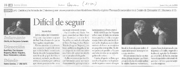 Ruiz traslada su universo al teatro [artículo] Verónica Marinao.
