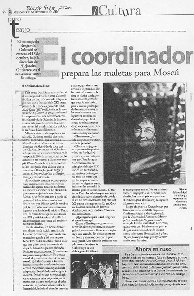 El coordinador prepara las maletas para Moscú [artículo] Cristián Labarca Bravo.