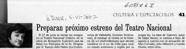 Preparan próximo estreno del Teatro Nacional [artículo]