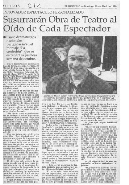 Susurrarán obra de teatro al oído de cada espectador [entrevista]. [artículo] :