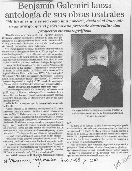 Benjamín Galemiri lanza antología de sus obras teatrales [artículo].