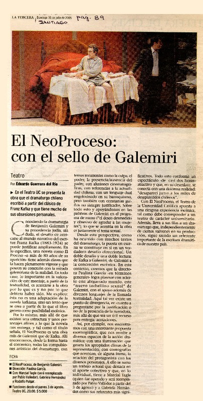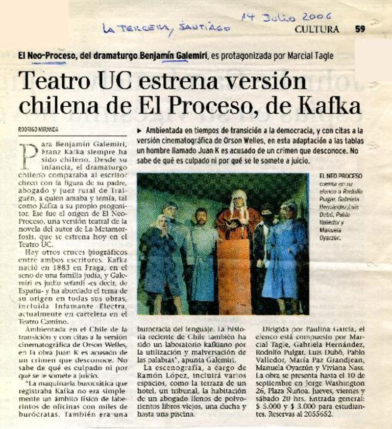 Autores chilenos - Galemiri, Benjamín - Kafka, Franz - Autores austríacos - Neo-Proceso - Proceso