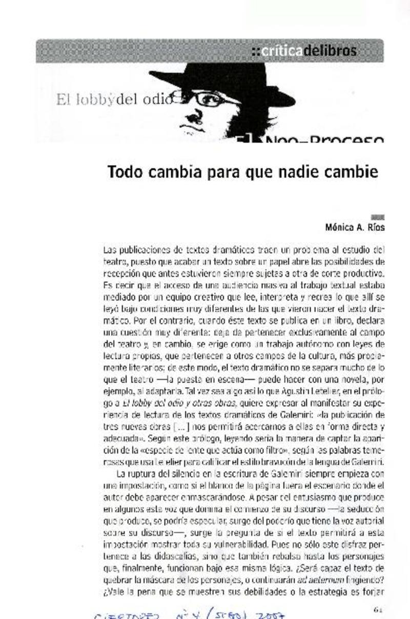 Todo cambia para que nadie cambie [artículo] Mónica A. Ríos.