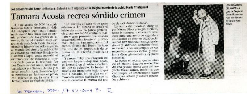 Tamara Acosta recrea sórdido crimen. [artículo]