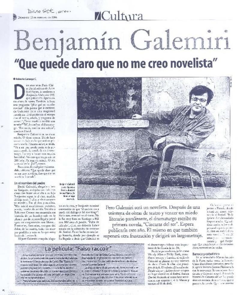 Benjamín Galemiri : "le tengo miedo al drama" [entrevista] [artículo] : Claudia Guzmán V.