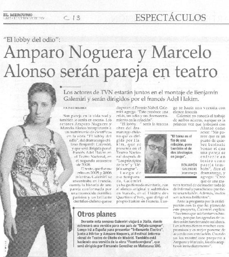 Amparo Noguera y Marcelo Alonso pareja en teatro [artículo] Eduardo Miranda.