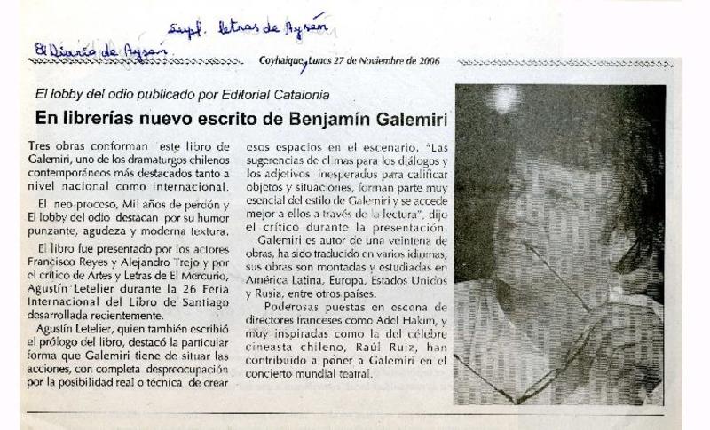 Autores chilenos - Galemiri, Benjamín - Lobby del odio