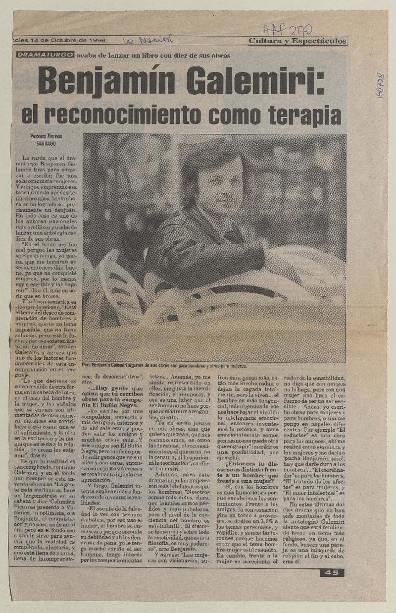 Benjamín Galemiri : el reconocimiento como terapia [entrevista] [artículo] : Verónica Marinao.