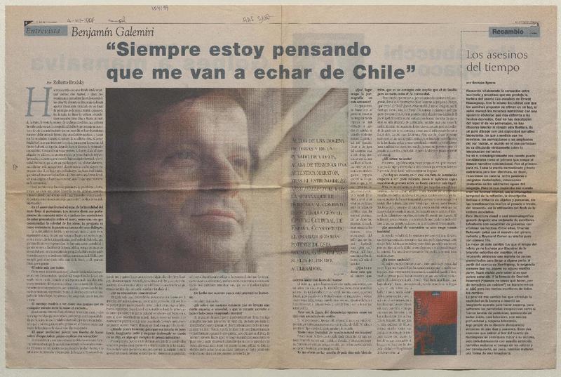 Benjamín Galemiri : "siempre estoy pensando que me van a echar de Chile" [entrevista] [artículo] : Roberto Brodsky.