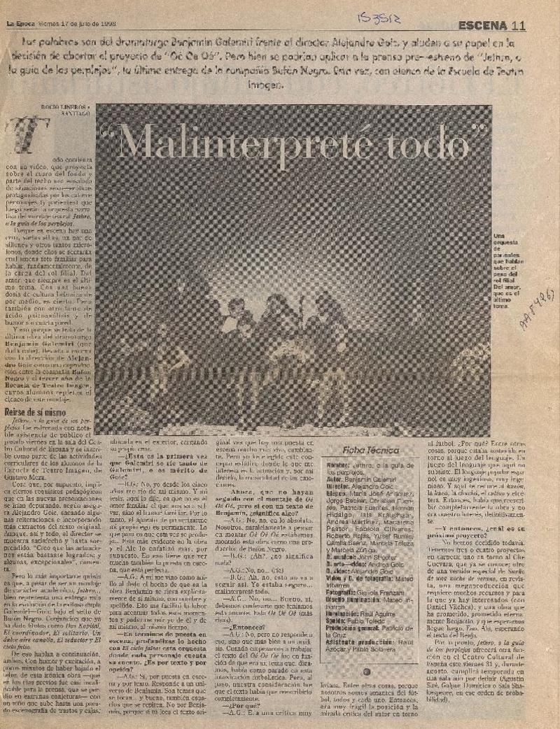 "No todo se juega por una obra de teatro" (entrevista) [artículo] Constanza Rojas V.
