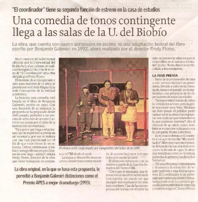 Una comedia de tonos contigente llega a las salas de la U. del Biobío [artículo]